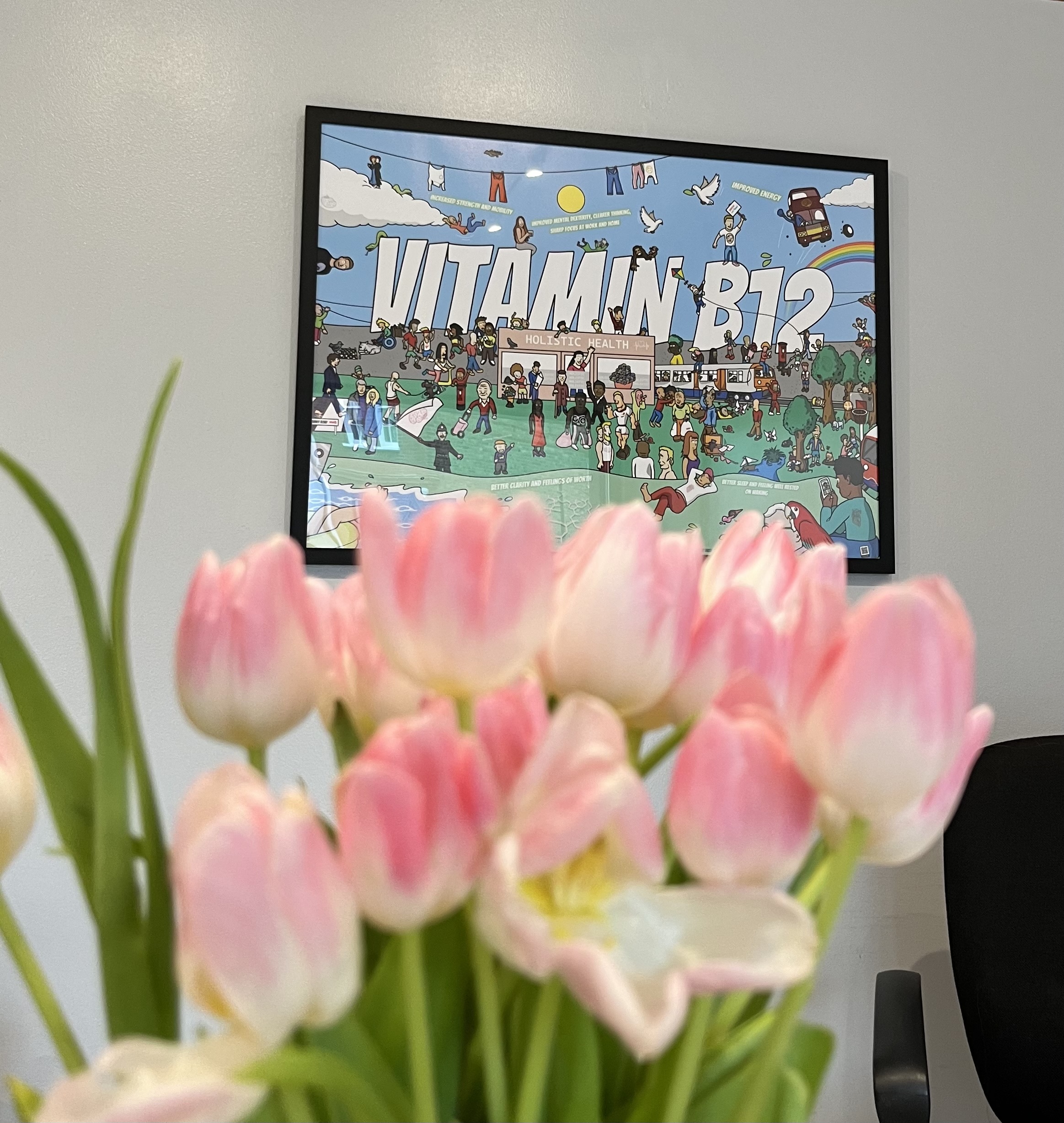 WELCOME! We love having our Vitamin B12 print in our welcoming reception space, designed by wonderfully talented friend Ben @drawmytown…